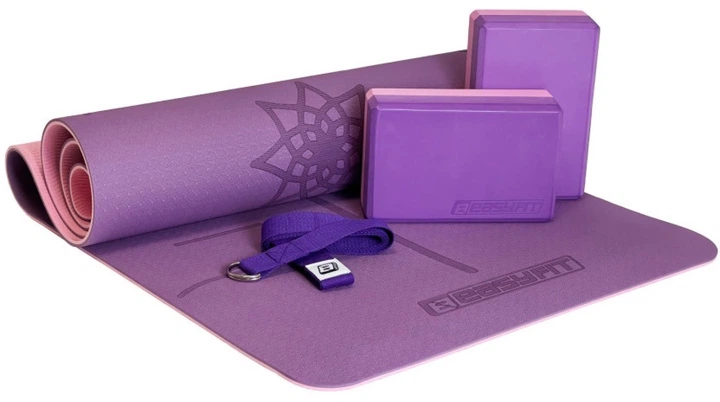 All materials are hypoallergenic and safe. The surface of the mat and blocks is matte, with reliable grip even in dynamics. The dimensions are thought out: the mat does not roll up, the blocks do not slip, the strap does not stretch. Everything withstands the load, retains color and shape.